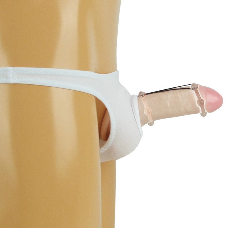 ショーツとリングはストラップで繋がった便利仕様!実用的かつサポート力も備えたメンズランジェリーです。