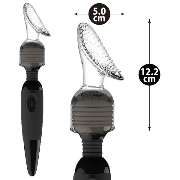 ●パワーワンド専用アタッチメント●清潔感のあるクリアカラー●優れた耐久性の柔軟エラストマー製●膣周辺をすっぽり包む幅広フォルム●ツブツブ突起を無数に配置●クリを捕らえる大きめ丸イボ●ヘッド直径4.5φcmの電マに使用可。