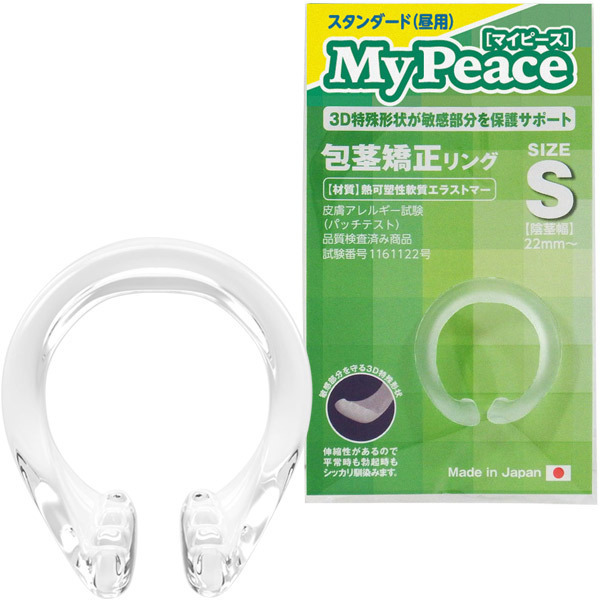 伸縮性に優れた包茎矯正リング「マイピース」は、この他にM(b25061)とL(b25062)、ソフト夜用のS(b25057)とM(b25058)とL(b25059)の計6種類を展開。