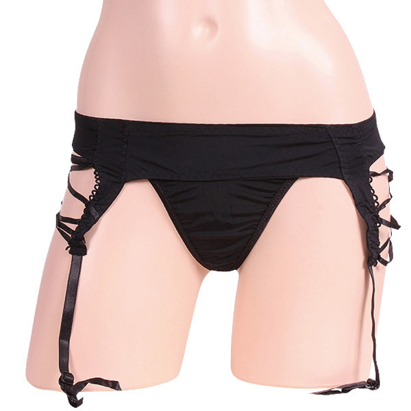 両サイドに細めのリボンをクロスに配置したセクシー系ガーターセット。