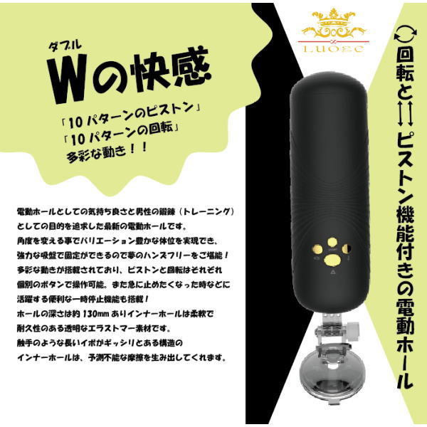 回転しながら超絶怒涛の高速ピストン!机や床に固定できる強力吸盤付き電動オナホール「Luoge Happiness Cup(ルーグ ハピネスカップ)LG-361」。