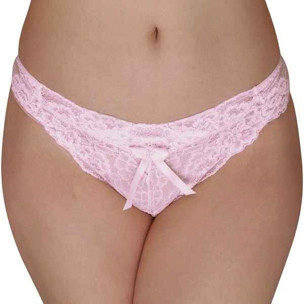 総レース仕立てのTバックショーツで下半身を美しく飾ります♪ピンク色のレース地にセンターにはちょこんとリボンが一つ。