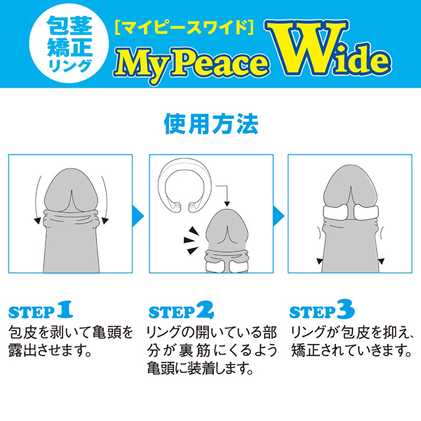 ロープライスで人気の包茎矯正用リングが従来よりも3倍ワイドになって新登場!これまで以上にズレにくく、そして外れにくくなりました♪包皮をむいて簡単ワンタッチで装着。