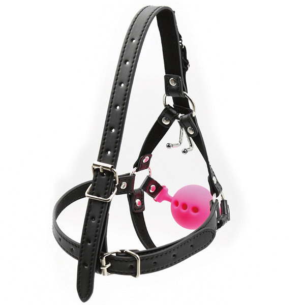 1つで2つの機能性!シリコン製のボールギャグと鼻フックが一体型となった合皮製の顔面ハーネスが登場。