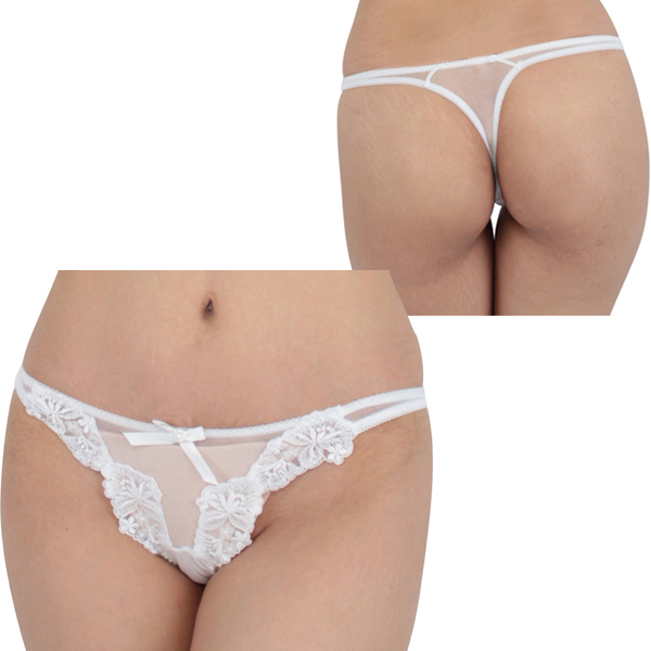 バックは食い込みがセクシーなTバック仕様で、フロント部分を美しく可憐な花の刺繍で飾るホワイトカラーの女性用ショーツです♪