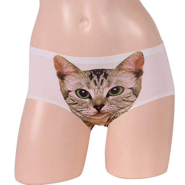 とことんハジけたもん勝ち!人気爆発中の猫プリント入りホワイトショーツ。