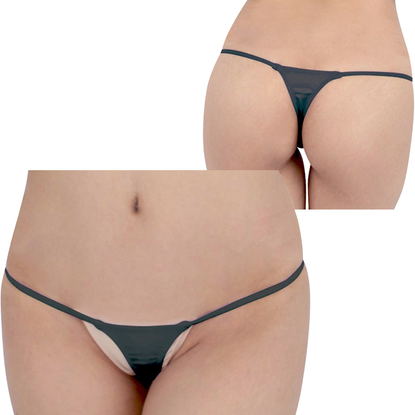 光沢柔らか極小TフロントTバック ブラック