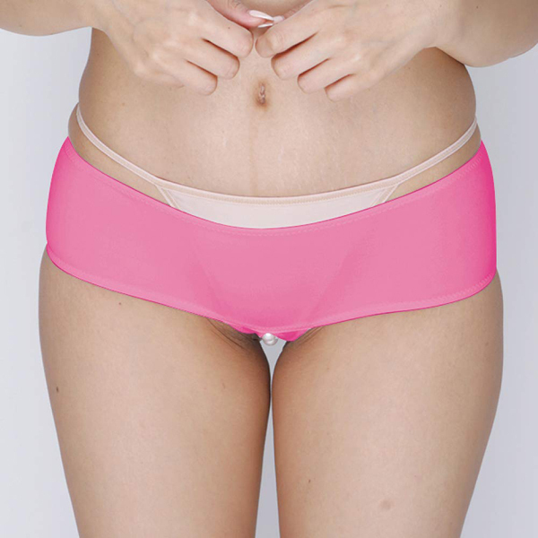 カラーはローズでデザインはボクサーパンツ風!素材もストレッチ素材のため身体にしっかり密着し穿き心地も快適♪アソコの部分がオープンになっていて連なるパールが付いているので、常に女性器を刺激してくれます。