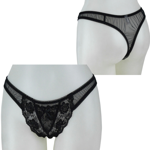2Lサイズ レース&シースルー極薄Tバック ブラック