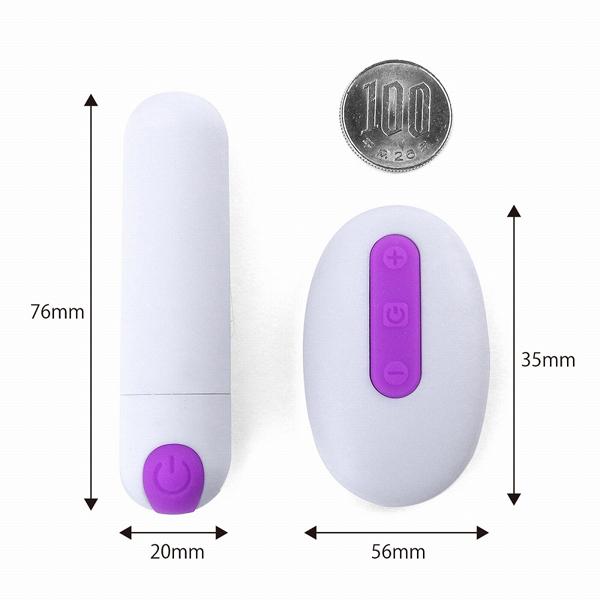 パッケージ:17.5×10.5×3.5cm  本体:ローター7.8×2.0cm・リモコン5.6×3.5×1.5cm 電池:本体(USB充電式)、リモコン(ボタン電池CR2032×1個)