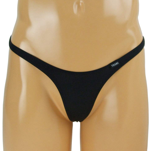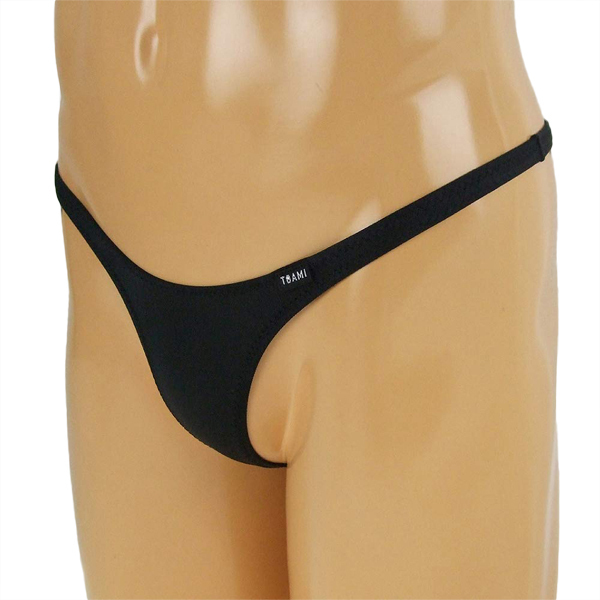 シンプルだけど大胆に魅せる!伸縮性の高い2wayストレッチ生地の男性用Tバック(黒)。