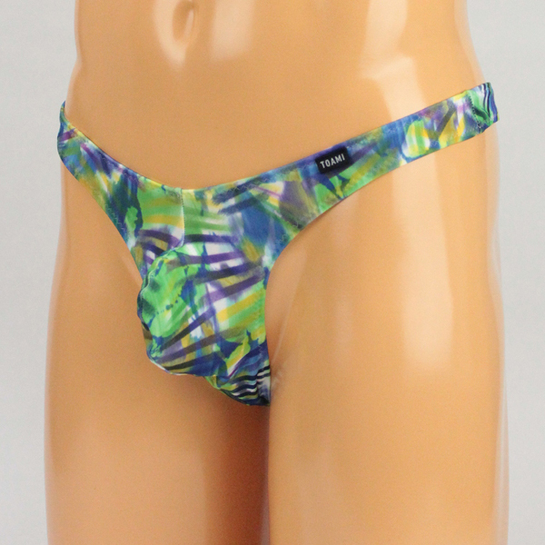 メンズ ストレッチ幾何学プリント柄もっこりTバック グリーン