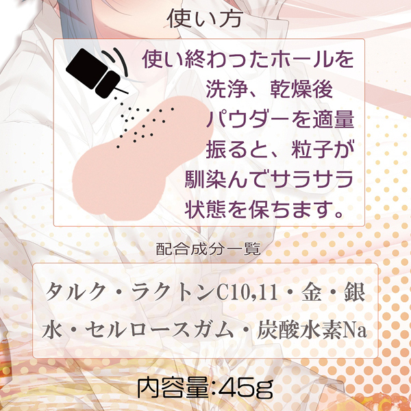振りかければ自分のオナホールが全てオンナノコの匂いになる魔法の粉?!オナホ用パウダーは使用後のオナホを洗浄乾燥してべたつきが無くなる程度に振りかけて下さい。