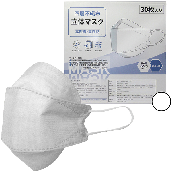 四層不織布立体マスク 30枚入り (ホワイト)