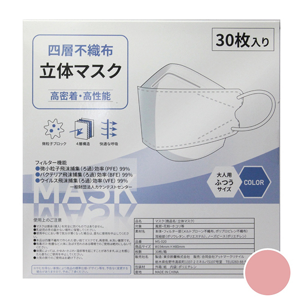 HOME > 特殊アイテム > 特選 > 四層不織布立体マスク 30枚入り (ローズ)
