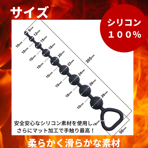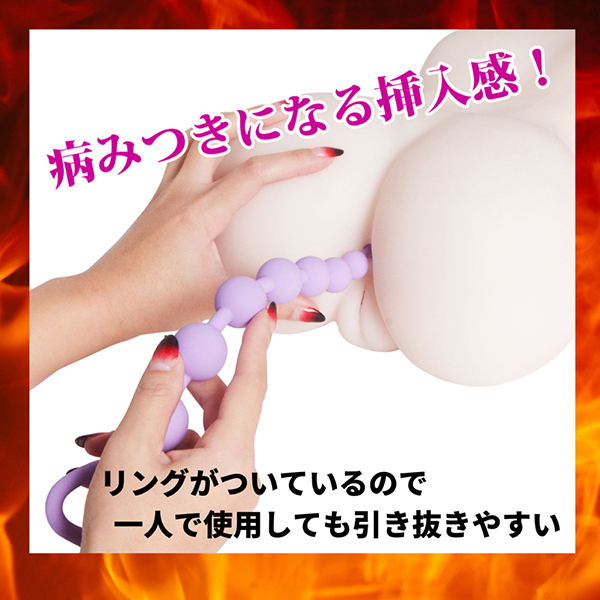 アナルにぬぷっとインしてズリュっと抜く!持ち手リング付きでハンドリングしやすい取っ手付きのアナルビーズです♪こちらのベータは9連ビーズで徐々にビーズ径が大きくなるタイプです。
