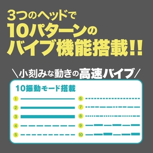 小さなヘッドだから集中した毎分12000回転の強振動を2種のシリコンヘッドを使い分けてお好みの場所で楽しんでください。
