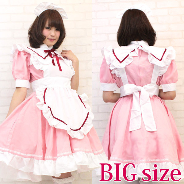 - BIGサイズ:B92〜110cm・W90〜100cm 丈:ワンピース91cm(肩幅:43cm、袖丈31cm、袖口38cm)・エプロン83cm セット内容:ワンピース(ウエストゴム入り、後ろファスナー)、エプロン、カチューシャ