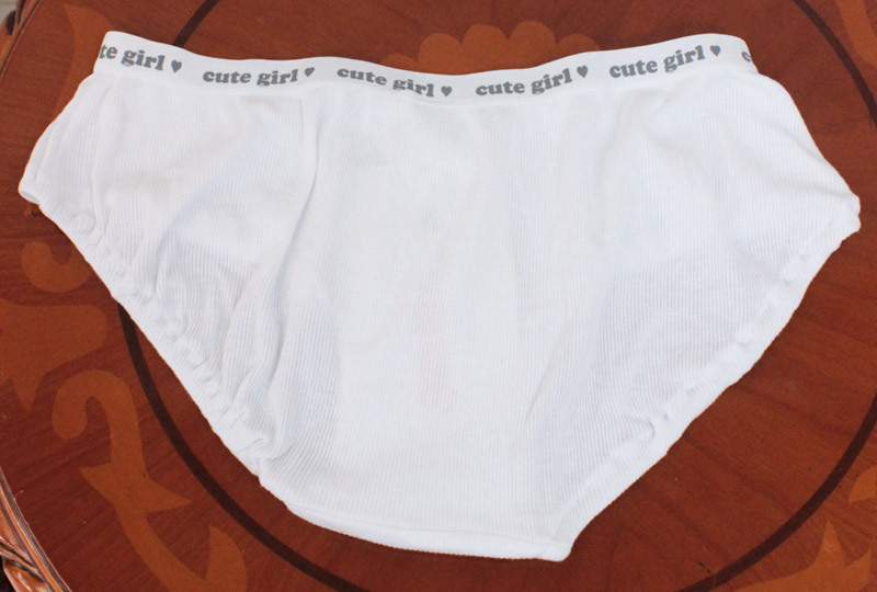 プリティガールに変身!純白リブ編み仕様の綿パンツ単品(M)。