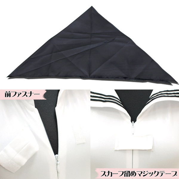 - BIGサイズ:B84〜106cm・W74〜98cm・H76〜100cm 着丈65cm セット内容:レオタード(前ファスナー)、スカーフ(マジックテープ) 素材:ポリエステル95%、ポリウレタン5% セーラーノースリーブレオタード 色:白