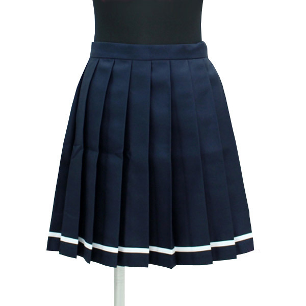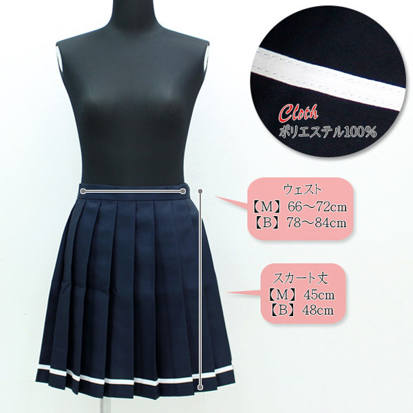 - BIGサイズ:W78〜84cm スカート丈48cm セット内容:スカート単品(横ファスナー、アジャスター調節可) 素材:ポリエストル100% 無地プリーツスカート単品 色:紺×白ライン