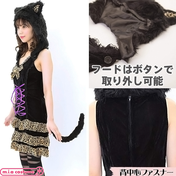 可愛い女豹に変身できる!ふんわりボリューミーな猫耳フードがついたハロウィン仮装。