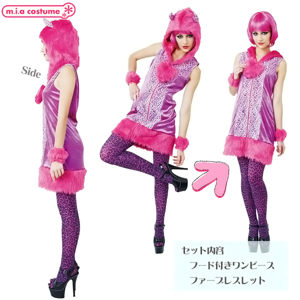 - Ladiesサイズ:B〜90cm・W〜70cm・H〜96cm・身長155〜165cm・着丈83cm・肩幅38cm・手首回り20〜26cm セット内容:フード付きワンピース(前ファスナー、フードとファー部分に裏地あり)、ファーブレスレット 素材:ポリエステル100%