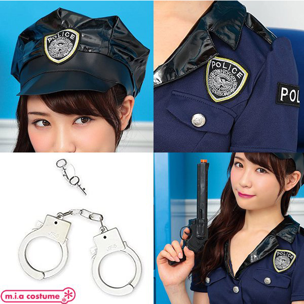 オーガンジーのふんわりスカートで可愛く決める!手錠や帽子など小物が付属したネイビーカラーのポリスコスプレ5点セット。