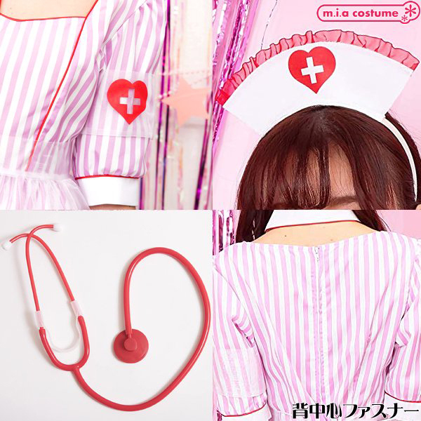 聴診器も付いていて充実の6点セットが嬉しい♪付け襟と開いた胸元が魅力的でポップな配色がフォトジェニックです。