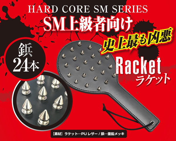 24本の鋲を備えたハードなラケットでフルスイング!鋲は片面のみなので、裏側の平らな面でスタンダードな調教プレイも可能です。