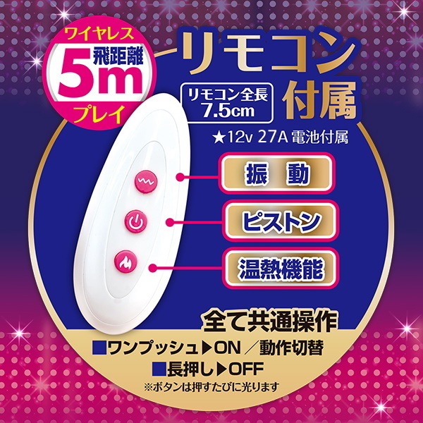 奥まで届く!奥まで響く!もっちり亀頭が挿入しやすく温熱機能搭載のお得なワイヤレスピストンディルド!Gスポット&子宮を激責め!!ひとりでもパートナーとも楽しめるワイヤレスリモコン付き!高品質シリコン製のもっちり亀頭&竿はガッチリ頑丈ストレート仕上げ。