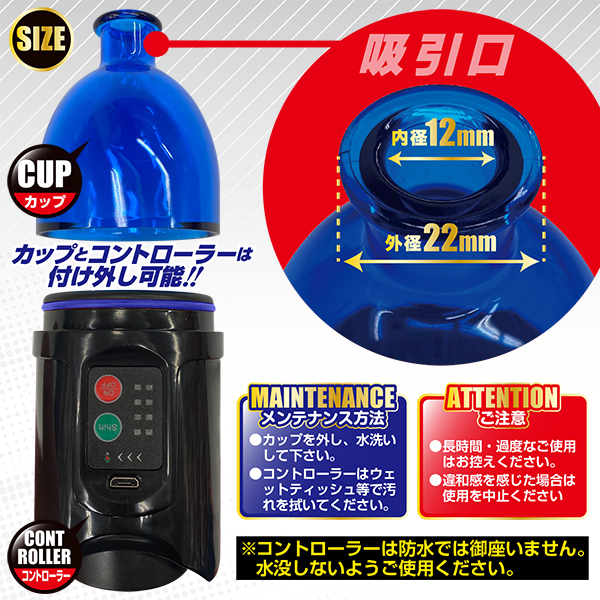 次元を超えた驚異の吸引力!真空ジェット吸引で超ひっぱりながら鬼吸いされてイキまくる♪男女兼用でクリや乳首を徹底的に吸引する「バキューマナイザー」が新登場!使い方はとても簡単で、吸引レベルを調節しながら本体を押し込んだりグリグリするだけ♪悶え苦しむほどの吸引力でセルフでの吸引はもちろん、パートナーとのプレイと楽しみ方は無限大!カップは取り外し簡単でメンテナンスもラクチン。