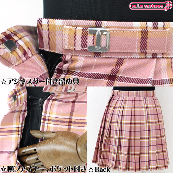 ウエスト調節可能なアジャスター付き留め具付きで、サイドには横ファスナーとポケットが付いた機能性抜群の本格派デザイン♪現役学生さんのコーデアイテムとして、コスプレ衣装や制服コスと合わせても可愛い!