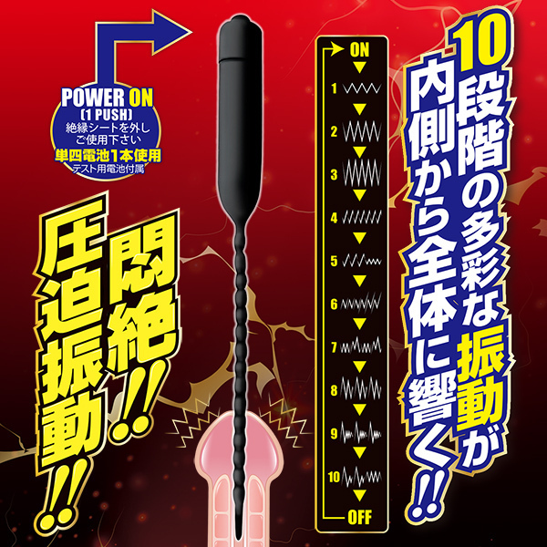 挿入刺激&拡張で上級者も納得!!ロングウェーブ形状で前立腺まで轟き渡る!!尿道アイテム『U−プラグ』シリーズにロングな電動タイプ登場!!悶絶圧迫振動でメスイキを狙え!!強力振動が尿道内部を直撃!!なめらかシリコン製で柔軟性バツグン!ポコポコした形状を奥まで押し込めばスティックが前立腺まで到達!!感じたことのない刺激を手に入れろ!!・シリコン素材・10段階振動・生活防水【ご注意】無理のない範囲でご使用ください。