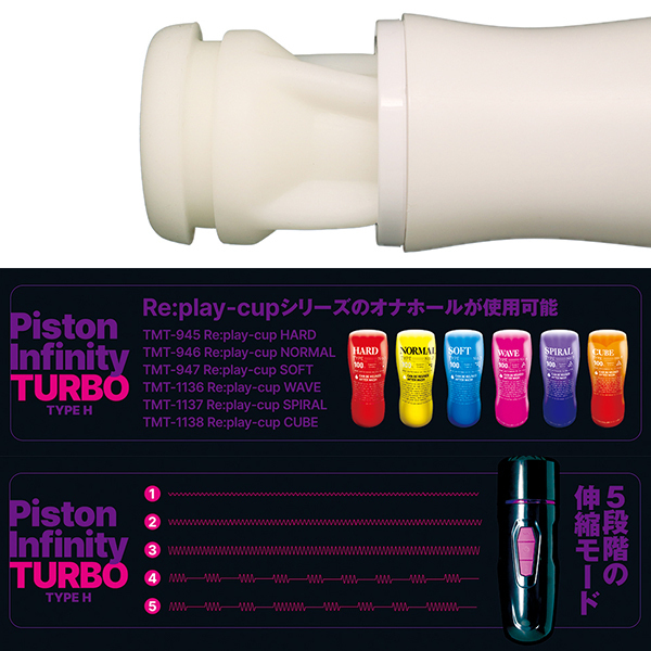 電動オナホも遂にここまで来ました!手持ちはもちろん、ハンズフリーでも楽しめる電動ピストンオナホール「Piston Infinity Turbo Type H」。