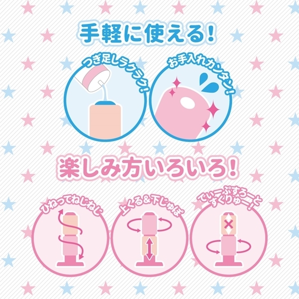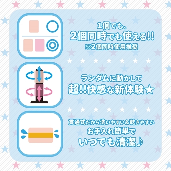 ギザギザ交互にぞりっと刺激する螺旋ヒダ構造!一つで使えっても気持ちいい、でも別売りの「にこにこばーじょん(t10580)」を合体させて使えばより気持ちよさ倍増♪回転させたり捻ったり、ランダムな刺激で未知なる快感を体験しよう♪お手入れしやすい貫通式