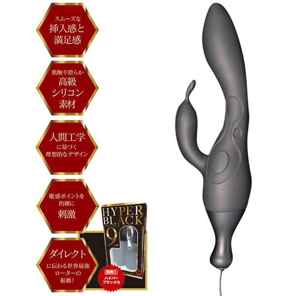 史上最強と謳われるハイパーブラック9(別売り)を更に楽しむなら、こちらの2点責めアイテムはいかがでしょうか?重厚感のある黒の高級シリコン素材は肌触り滑らか!緩やかな曲線はスムーズな挿入をサポートします♪また、快感ポイントをしっかり狙えるよう人間工学に基づいてデザインされているため、イク瞬間までダイレクトな振動を余すことなくお楽しみいただけます。