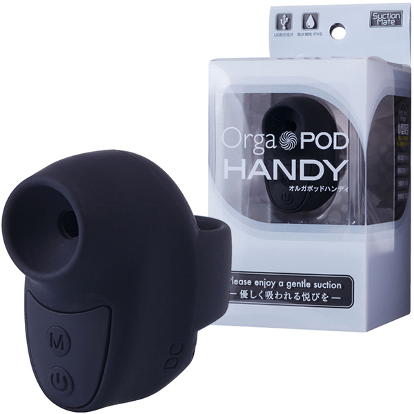 可愛いデザインと確かな吸引力で人気のオルガポッド・シリーズから指にはめて使用する超小型サイズの「オルガポッドハンディ(ブラック)」が登場!3段階のパワー強弱と7段階の振動パターンが楽しめて、お肌に優しいシリコン素材だから、つるっとした柔らかい感触をお楽しみいただけます。