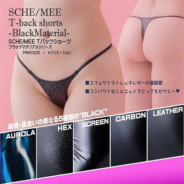 素材感が異なる黒のコーティング素材を使用したTバックショーツです。