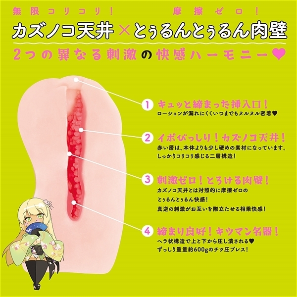 無限コリコリのカズノコ天井!摩擦ゼロのとぅるんとぅるん肉壁!2つの異なる刺激の快感ハーモニー!締まり良好なキツマン名器がヘラ状構造で上と下からチツ圧プレス!むぎゅーっと人肌感触のずっしり肉厚重量約600g!手になじむなめらか曲線ボディに、興奮度MAXのぷっくりワレメ!匠の造形技術による超リアルトルソー型ホール!耐久性抜群の高弾力もっちり快感!直接肌に触れるものだから、安全性と感触にこだわった高品質なエラストマーを使用しています。