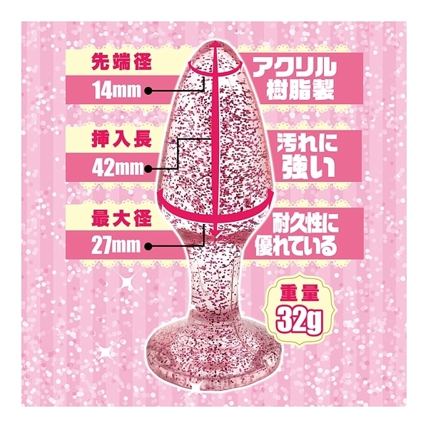 ラメ入りがとってもキュートなキラキラ系アダルトグッズ、「ラメ入りア●ルプラグ」!気分はまるでパーティー♪透明ボディの中には、キラキラのラメがみっちり入りました。