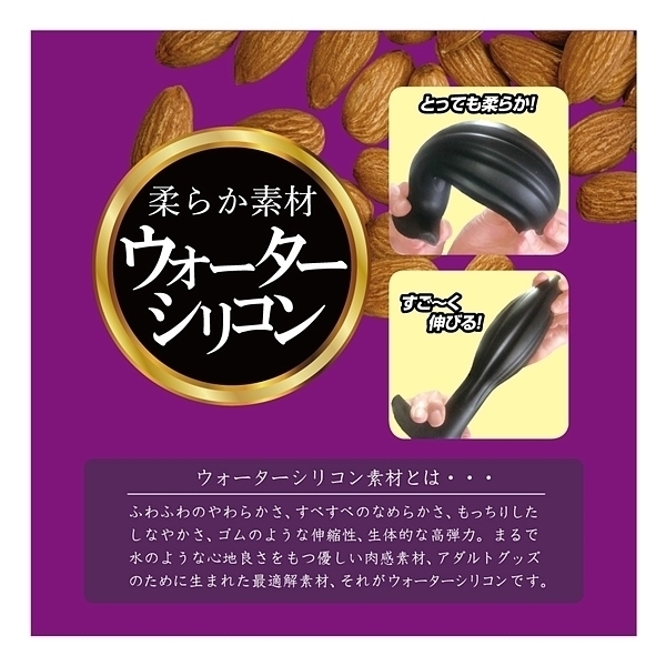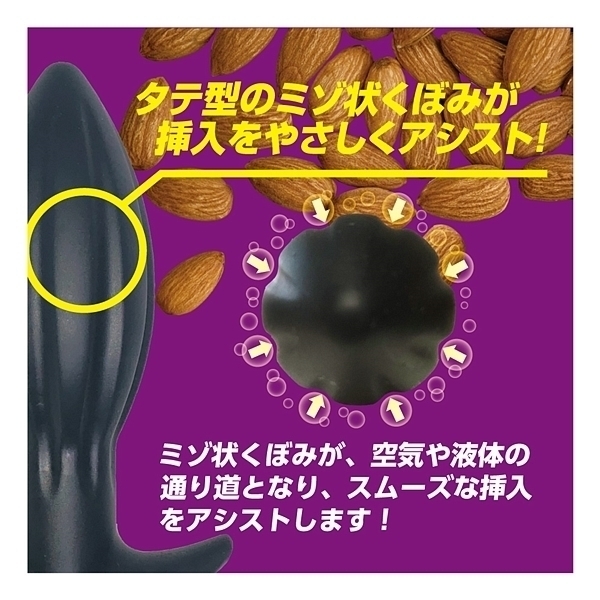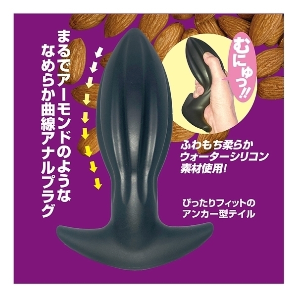 アーモンドフォルム×ウォーターシリコン!形状と素材にこだわった、新感覚ア●ルプラグが新登場!アーモンドナッツのような形状は、先端部に向かってすぼんでいく流線フォルムとなり、スルッとした挿入感を生み出します。