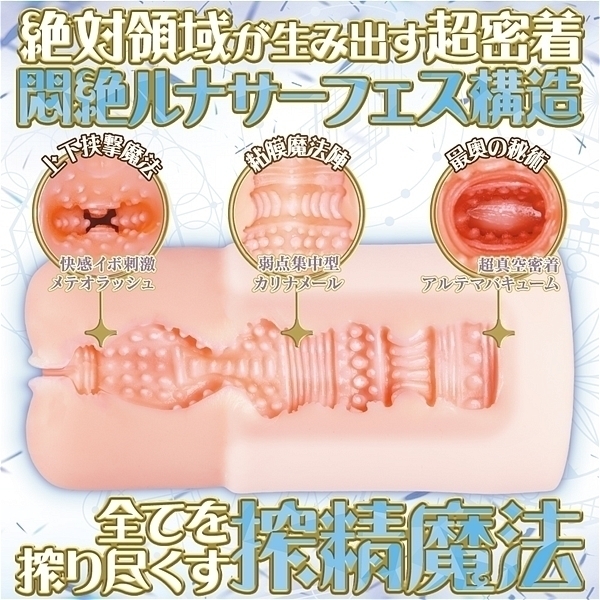 ニーソックスのような「アウター2層構造」の絶対領域は完璧な柔硬バランスにより生まれる「アルテマバキューム」で快感を逃さない「超密着」を実現しました!そんな「見習い魔女のルナ」は内部は「サーフェス構造」になっており、挿入感もミラクル。