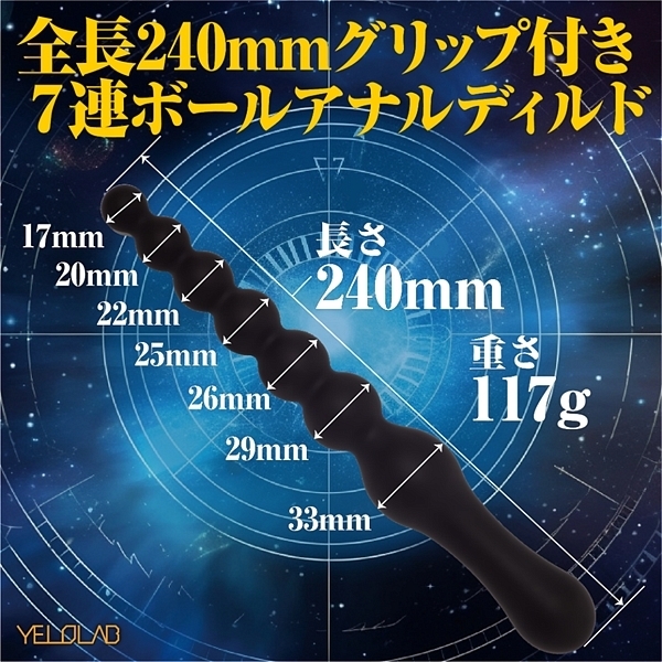 全長240MMで大小7つの玉が連なるアナル開発用ディルド。