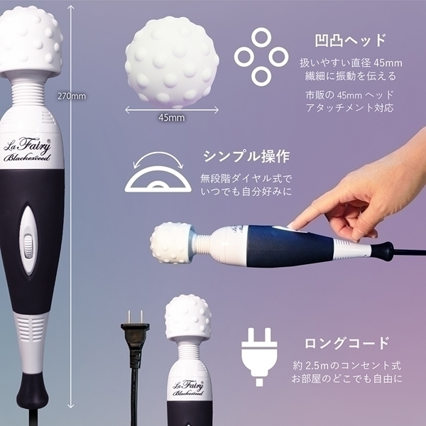 快適なリフレッシュケアをサポートする高性能ハイグレードモデルです♪直径45mmの小型ヘッドは使いやすく、滑らかなシリコン製により肌触りも優しく、お手入れが簡単です!毎分最高10500回転を誇る独自の高性能モーターが、パワフルで耐久性のある使用感を提供します♪ダイヤル式コントローラーで、繊細な振動から力強い振動まで好みに合わせて操作可能!クーリングファンを搭載し、長時間使用しても熱くなりにくい設計になっています♪ボディには手触りの良いシリコン加工を施し、細身のデザインが手の小さな方にも快適に使用できるよう配慮されています!2.5mのロングコンセントにより、幅広い場所での使用が可能です♪