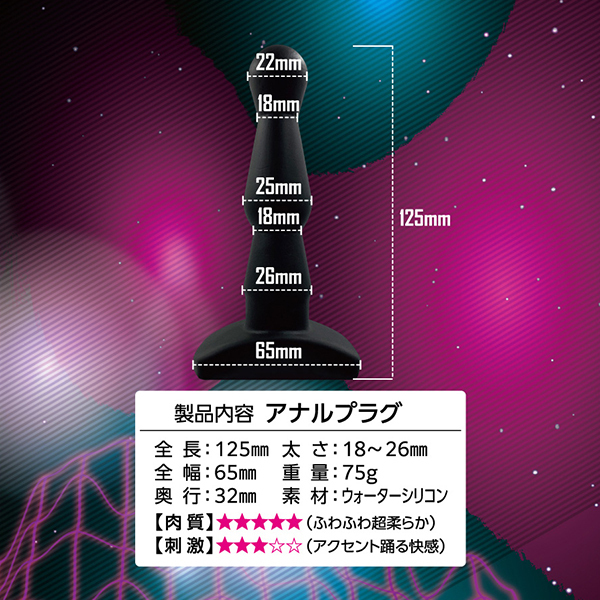 ウォーターシリコン素材を使っているのでマイルドな挿れ心地と快感が目新しい!丸いボール状の先端から徐々に太くなるくびれと3つの異型ゾーン。